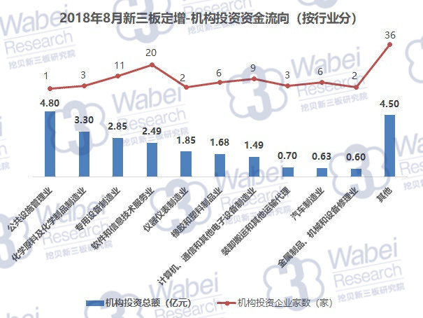2018年8月,新三板企業(yè)共定增募資42.08億元,其中,機(jī)構(gòu)對企業(yè)投資24.89億元,環(huán)比降9.7%。機(jī)構(gòu)投資總額占新三板企業(yè)募資總額的59.1%。