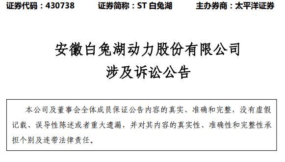 8月22日,國元網(wǎng)金將白兔湖告上法庭,要求判令安徽白兔湖動力股份有限公司立即歸還借款本金人民幣3000萬元和服務(wù)費本金126萬元,以及各種利息和罰息。