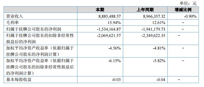 報告期內(nèi),公司實現(xiàn)營業(yè)收入888.55萬元,較上年度同期減少8.09萬元,減少比例0.90%,主要是本期管道支吊架銷售減少所致;實現(xiàn)凈利潤-153.42萬元。?