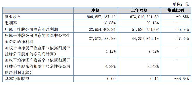 報(bào)告期內(nèi)公司實(shí)現(xiàn)營(yíng)業(yè)收入60,668.72萬(wàn)元,與上年同期相比降低9.85%,歸屬于母公司所有者的凈利潤(rùn)3295.44萬(wàn)元,與上年同期相比減少36.54%。?