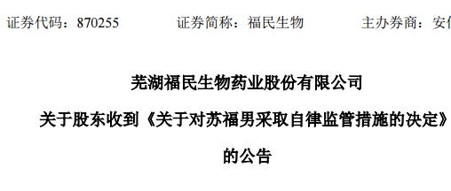 挖貝網(wǎng) 9月6日消息,新三板掛牌企業(yè)福民生物(870255)實控人之一蘇福男減持股票過程中違規(guī),被全國股轉(zhuǎn)公司處罰。