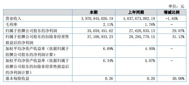挖貝網(wǎng)9月6日,招金勵福(證券代碼:835776)近日公布的2018年半年報(bào)顯示,截至2018年6月30日,企業(yè)實(shí)現(xiàn)營收39.71億元;歸屬于掛牌公司股東的凈利潤為3565.94萬元。