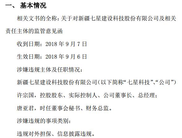 挖貝網(wǎng) 9月9日消息,新三板掛牌公司七星科技(430746)擅自為2家公司擔保,涉及金額1500萬,七星科技、董事長許宗國、財務(wù)總監(jiān)唐亞君被股轉(zhuǎn)處罰。