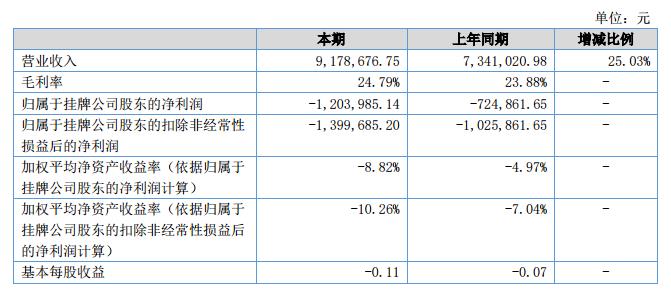 報(bào)告期內(nèi),公司資產(chǎn)總額為1615.67萬(wàn)元,較上年度末減少12.33%,負(fù)債總額為285.45萬(wàn)元,較上年度末減少了25.25%,實(shí)現(xiàn)營(yíng)業(yè)收入917.87萬(wàn)元,同比增加183.77萬(wàn)元;實(shí)現(xiàn)凈利潤(rùn)-120.40萬(wàn)元,同比減少47.91萬(wàn)元;經(jīng)營(yíng)活動(dòng)現(xiàn)金凈流量為-59.68萬(wàn)元,比上年度同比增加312.02萬(wàn)元。?