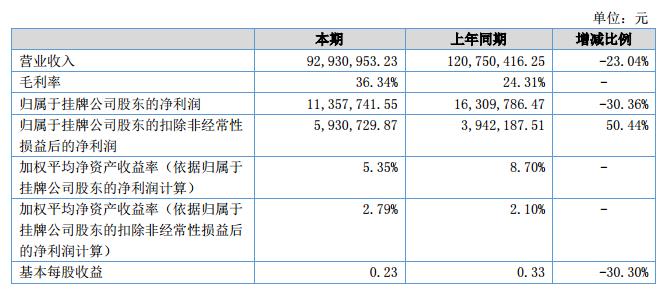 挖貝網(wǎng)9月11日,華佳絲綢(證券代碼:836823)近日公布的2018年半年報(bào)顯示,截至2018年6月30日,企業(yè)實(shí)現(xiàn)營(yíng)收9293.1萬(wàn)元;歸屬于掛牌公司股東的凈利潤(rùn)為1135.77萬(wàn)元。