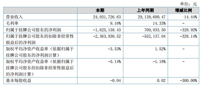 報告期內(nèi)公司實現(xiàn)營業(yè)收入24,931,726.63元,較上年同期減少14.44%%,主要原因系公司處于產(chǎn)業(yè)結(jié)構(gòu)調(diào)整轉(zhuǎn)型期,傳統(tǒng)業(yè)務(wù)品種淘汰,新興業(yè)務(wù)品種收入增長幅度慢;凈利潤-1,625,158.43元,同比減少328.92%,主要是因為商品成本較高,成本增加率大于收入增加率,利潤率較低。?