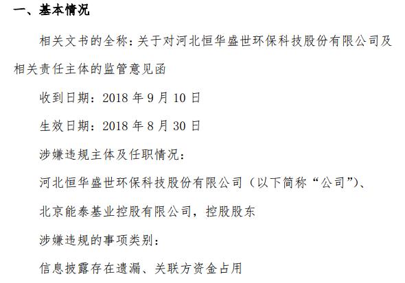 挖貝網訊 2018年9月12日消息,新三板掛牌公司恒盛環(huán)保(832231)控股股東占用公司孫公司資金,公司和控股股東被股轉處罰。