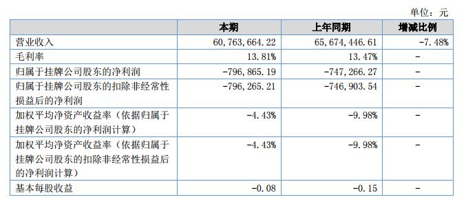 報(bào)告期內(nèi)公司實(shí)現(xiàn)營(yíng)業(yè)收入60,763,664.22元,同比減少7.48%;營(yíng)業(yè)成本為52,371,125.53元,同比減少7.84%;凈利潤(rùn)為-796,865.19元。截止2018年6月30日,資產(chǎn)總額為105,655,660.48元,負(fù)債總額為88,118,999.27元,所有者權(quán)益合計(jì)為17,536,661.21元。2018年上半年?duì)I業(yè)收入比去年同期減少7.48%的主要原因?yàn)榭蛻?hù)的大部分訂單約定在下半年執(zhí)行。2018年上半年毛利率比去年同期大致持平,2018年上半年凈利潤(rùn)比去年同期減少了6.64%主要原因是2018年上半年?duì)I業(yè)額不足。?