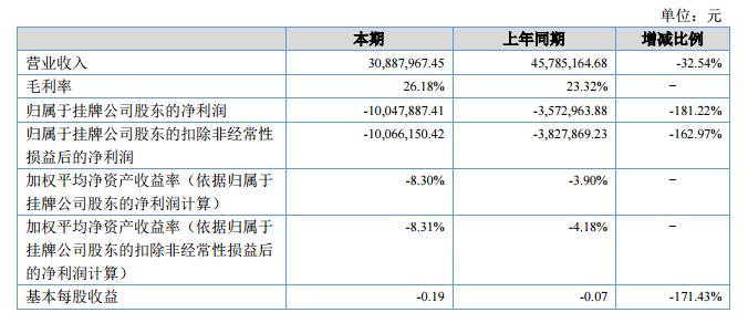 報告期內(nèi),公司按照年初制定的經(jīng)營計劃開展各項業(yè)務(wù)。2018年上半年,公司營業(yè)收入3,088.80萬元,較去年同期下降32.54%。報告期,歸屬于掛牌公司股東的凈利潤-1,004.79萬元,較去年同期下降181.22%。?