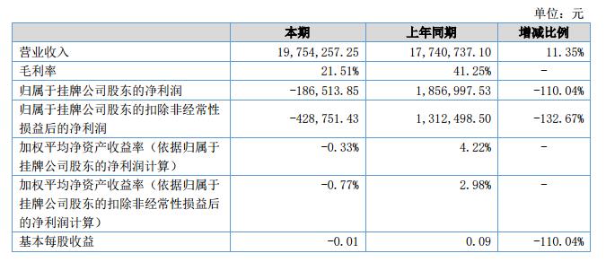 報(bào)告期內(nèi),公司整體財(cái)務(wù)狀況出現(xiàn)下滑,營(yíng)業(yè)收入整體保持平穩(wěn),但凈利潤(rùn)同比出現(xiàn)虧損,從而造成公司有關(guān)盈利指標(biāo)大幅下降。公司的營(yíng)業(yè)收入19,754,257.25元,同比增長(zhǎng)11.35%,主要原因是:公司加強(qiáng)自身產(chǎn)品銷(xiāo)售,強(qiáng)化營(yíng)銷(xiāo)團(tuán)隊(duì),提高產(chǎn)品交付能力,從而推動(dòng)了收入增長(zhǎng);營(yíng)業(yè)成本15,505,473.89元,同比增長(zhǎng)48.75%,主要原因是:上半年原材料價(jià)格大幅上升,導(dǎo)致生產(chǎn)成本增加;凈利潤(rùn)-186,513.85元,出現(xiàn)虧損,主要是公司生產(chǎn)成本增加導(dǎo)致凈利潤(rùn)下降;經(jīng)營(yíng)性現(xiàn)金流量?jī)纛~-9,756,297.34元,上年同期為-11,651,964.80元,主要是因?yàn)楣颈酒谫?gòu)置原材料投入的金額加大,但公司提高了有關(guān)存貨的周轉(zhuǎn)效率,穩(wěn)定了現(xiàn)金狀況。?