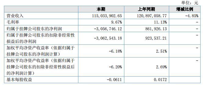 挖貝網(wǎng)9月13日,宏大股份(證券代碼:872798)近日公布的2018年半年報(bào)顯示,截至2018年6月30日,企業(yè)實(shí)現(xiàn)營收1.15億元;歸屬于掛牌公司股東的凈利潤為-305.67萬元。