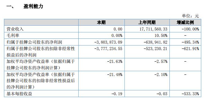 報告期內(nèi),公司經(jīng)營情況不盡人意。截至 2018 年 6 月 30 日,公司總資產(chǎn) 17,130,632.57 元,凈資產(chǎn) 15,684,999.43 元。2018 年上半年度,公司未取得營業(yè)收入,凈利潤虧損 3,803,873.09 元,經(jīng)營活動產(chǎn)生的現(xiàn)金流量凈額為-2,520,777.98 元。