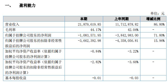 公司 2018 年上半年實(shí)現(xiàn)營(yíng)業(yè)收入 2187.96 萬(wàn)元,營(yíng)業(yè)收入同比增長(zhǎng) 86.80%,歸屬于掛牌公司股東的凈利潤(rùn)同比增長(zhǎng) 71.80%。其原因在于道路施工的季節(jié)性特征導(dǎo)致報(bào)告期內(nèi)部分施工企業(yè)開(kāi)工較早,對(duì)水泥碎石穩(wěn)定混合料、商品混凝土、水泥制管等產(chǎn)品需求較去年同期有所增加,公司產(chǎn)品營(yíng)業(yè)收入增長(zhǎng)率和凈利潤(rùn)增長(zhǎng)率均大幅度提高。公司主要營(yíng)業(yè)收入和利潤(rùn)集中在 4-11 月份,報(bào)告期內(nèi)公司凈利潤(rùn)為-108.36 萬(wàn)元,主要是受公司季節(jié)性停工影響,停工期間費(fèi)用達(dá) 203.32 萬(wàn)元等綜合因素導(dǎo)致凈利潤(rùn)出現(xiàn)負(fù)值。報(bào)告期內(nèi)公司負(fù)債同比增長(zhǎng) 50.45%,主要原因在于公司備料支出增長(zhǎng)及報(bào)告期內(nèi)公司員工大幅度增加,應(yīng)付工資上漲。