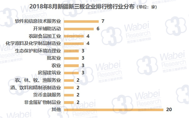 從行業(yè)分布來看,軟件和信息技術(shù)服務(wù)業(yè)的企業(yè)數(shù)量最多,有7家企業(yè);其次是開采輔助活動(dòng),有6家企業(yè)。(來源:挖貝新三板研究院)