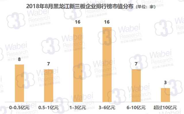 排行榜榜單中有3家企業(yè)市值超過10億元,而市值在0-0.5億元、0.5-1億元、1-3億元、3-6億元、6-10億元的企業(yè)分別有8家、7家、16家、16家、7家。
