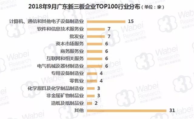從上榜企業(yè)所處行業(yè)分布來看,計算機、通信和其他電子設(shè)備制造業(yè)的企業(yè)數(shù)量最多,有15家企業(yè);其次是軟件和信息技術(shù)服務業(yè)、批發(fā)業(yè),均有7家企業(yè);資本市場服務、商務服務業(yè)等行業(yè)排名第三,均有6家企業(yè)。(來源:挖貝新三板研究院)