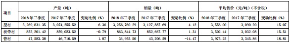 據(jù)凌鋼股份最新發(fā)布的第三季度經(jīng)營數(shù)據(jù)顯示,第三季度,公司的主營產(chǎn)品型材產(chǎn)量、銷量分別同比增長了6.36%、4.12%。同時,公司的三大產(chǎn)品型材、板帶材、管材的平均售價均較去年同期提升了15%以上,其中,型材平均售價為3556元/噸,較上年同期增長了15.07%。
