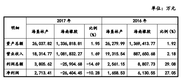 2016年、2017年海墾林產對海南橡膠的業(yè)績貢獻明細(挖貝網wabei.cn配圖)