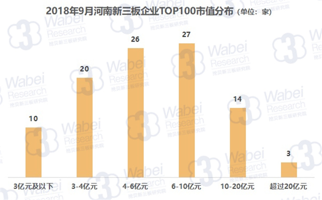 TOP100上榜門檻為2.66億元,其中有3家企業(yè)市值超過20億元,而市值在3億元及以下、3-4億元、4-6億元、6-10億元、10-20億元的企業(yè)分別有10家、20家、26家、27家、14家。
