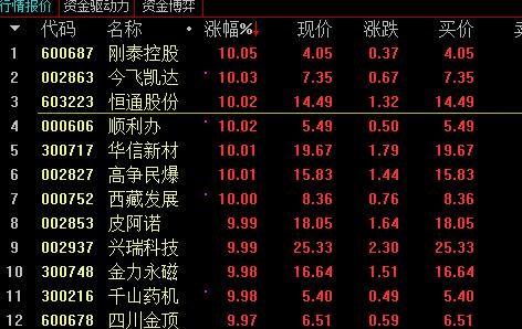 另外,剛泰控股、今飛凱達(dá)、恒通股份、順利辦等有12家公司股價(jià)逆勢漲停。