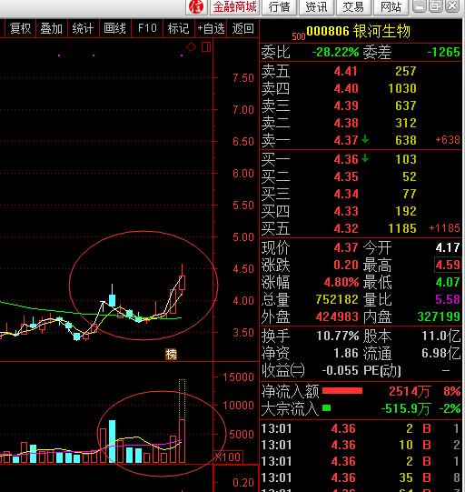 挖貝網(wǎng)訊 10月11日消息,受到隔夜美股暴跌4%的負(fù)面影響,今日A股市場低開低走,截止今日上午收盤,上證指數(shù)下跌4.34%,跌破2638點的前期低點。盤面上,跌停個股一度接近300只,跌幅超過9%的股票達(dá)到630只,而僅有67只個股飄紅,其中30只個股漲幅超過3%。銀河生物(000806.SZ)公告重大利好消息,受到資金關(guān)注,盤中一度觸及漲停,上午收盤有所回落,收漲3.6%,觀察發(fā)現(xiàn),銀河生物最近幾個交易日出現(xiàn)逆勢放量大漲,近期漲幅一度超過20%,而同期大盤下跌超過7%,顯示出投資者對公司未來發(fā)展的信心,有望繼續(xù)獲得資金關(guān)注。