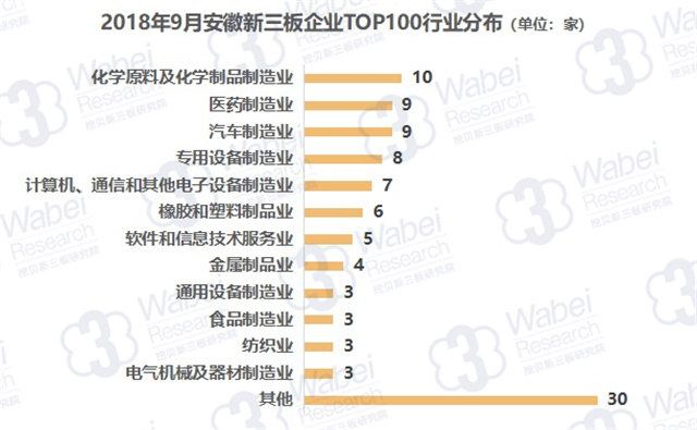 從上榜企業(yè)所處行業(yè)分布來看,化學(xué)原料及化學(xué)制品制造業(yè)的企業(yè)數(shù)量最多,有10家企業(yè);其次是醫(yī)藥制造業(yè)、汽車制造業(yè),均有9家企業(yè);專用設(shè)備制造業(yè)排名第三,有8家企業(yè)。(來源:挖貝新三板研究院)
