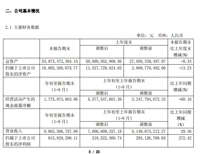 1-9月利潤(rùn)8.14億元,同比增長(zhǎng)272%。截止到2018年9月30日,公司擁有貨幣現(xiàn)金126億元,年初余額155億元。