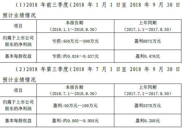 挖貝網(wǎng) 10月14日消息,三毛派神(000779)發(fā)布三季度業(yè)績預(yù)告,利潤在50萬元—100萬元之間,去年同期盈利5378萬元。2018年前三季度,虧損在450萬元—500萬元之間,去年同期盈利8872萬元。