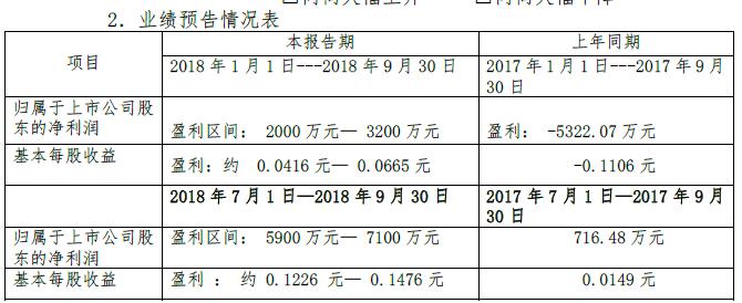 其中,三季度,盈利區(qū)間為5900萬元— 7100萬元,去年同期盈利716.48萬元。