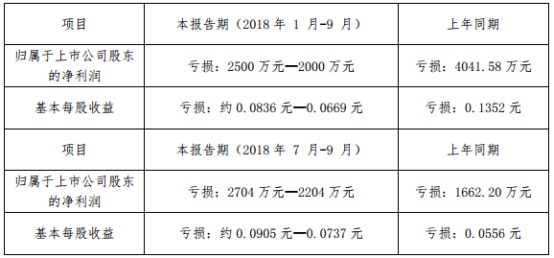 豐樂(lè)種業(yè)2018年前三季度業(yè)績(jī)預(yù)告顯示,前三季度,公司預(yù)計(jì)虧損2000萬(wàn)元至2500萬(wàn)元,虧損金額同比降超38%。;第三季度,公司預(yù)計(jì)虧損2204萬(wàn)元至2704萬(wàn)元,虧損金額同比增超33%。
