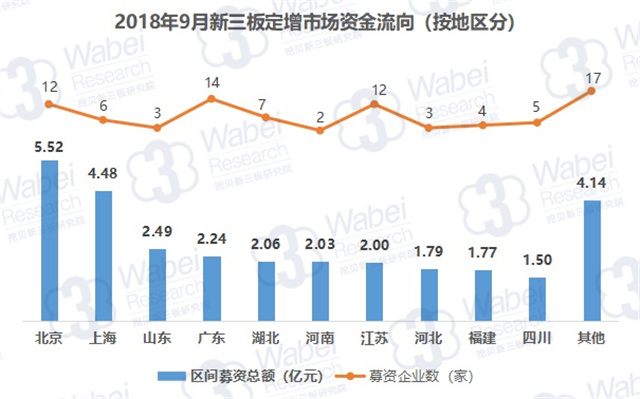 上月,新三板定增市場(chǎng)上,吸引資金排名前三的地區(qū)是北京、上海和山東,三地共募資12.49億元,占新三板企業(yè)募資總額的41.6%。