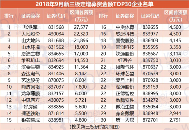 附:2018年9月新三板定增募資金額TOP30企業(yè)名單