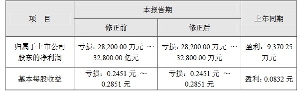 今日晚間,豫能控股發(fā)布上述業(yè)績預(yù)告的修正公告。稱原業(yè)績預(yù)告披露的“2018年前三季度預(yù)計業(yè)績情況”表格中個別數(shù)據(jù)單位錯誤,將前三季度預(yù)計虧損額修正為2.8億-3.28億。