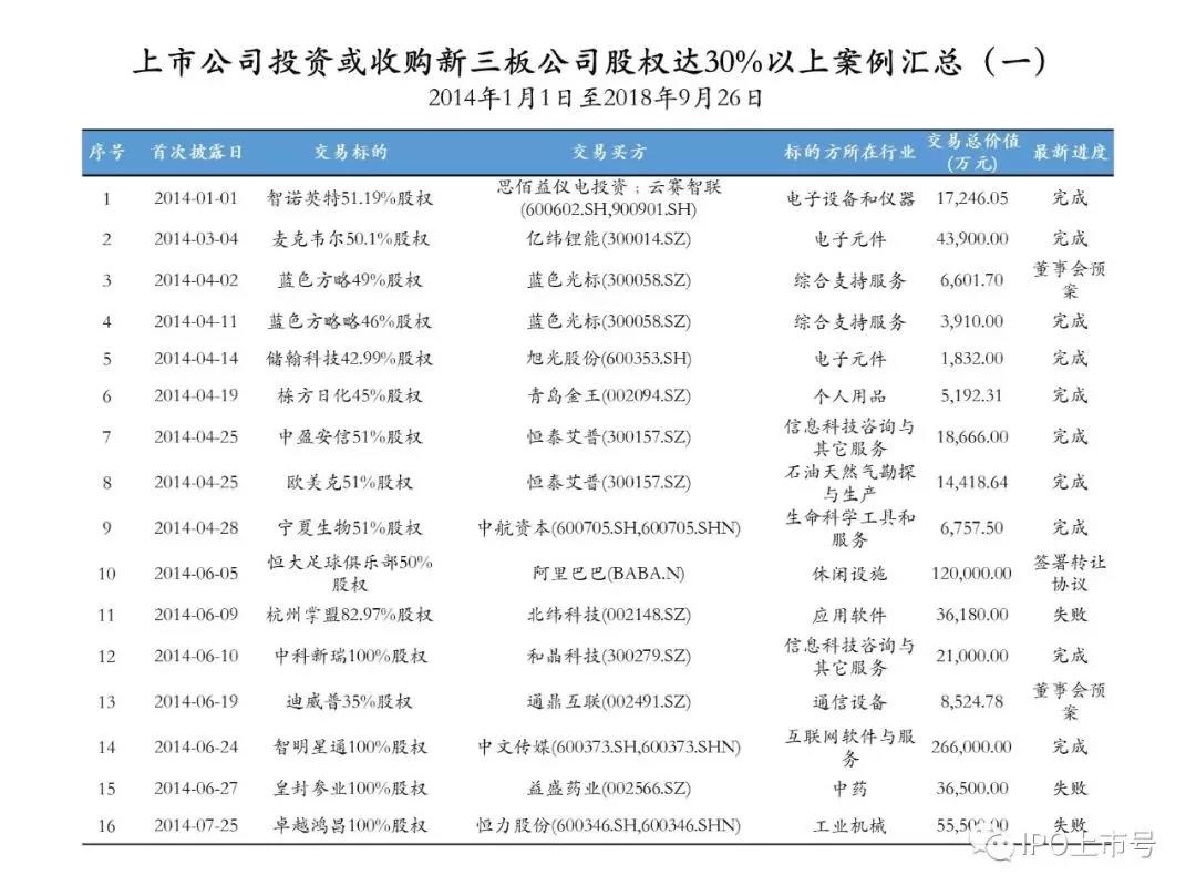 原標(biāo)題《收藏 | 2014年至今上市公司并購新三板企業(yè)案例匯總》