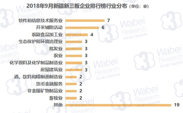 從行業(yè)分布來看,軟件和信息技術(shù)服務業(yè)的上榜企業(yè)數(shù)量最多,有7家企業(yè);其次是開采輔助活動,有6家企業(yè);農(nóng)副食品加工業(yè)排名第三,有4家企業(yè)。(來源:挖貝新三板研究院)