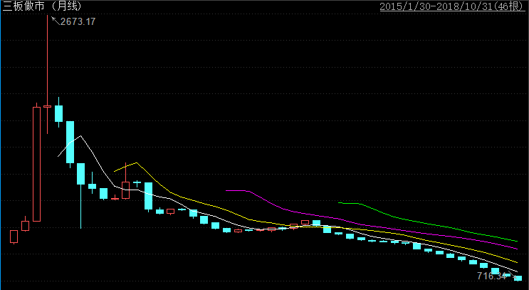 這是三板做市指數(shù)(899002)的月K線,10月結(jié)束,已經(jīng)連續(xù)19根陰線。上一次,我們看到做市指數(shù)單月上漲,還是遙遠(yuǎn)的2017年3月。