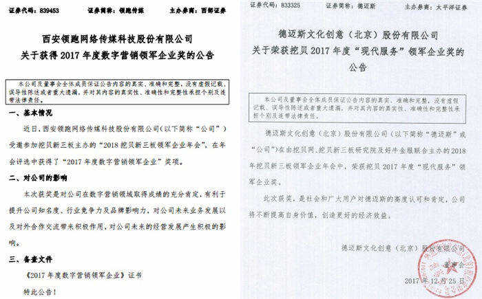 “挖貝新三板領(lǐng)軍企業(yè)年會”已成功舉辦了兩屆,在業(yè)界頗具影響力,每屆大會都受到網(wǎng)易、搜狐等權(quán)威媒體的廣泛關(guān)注。同時,年會獲獎企業(yè)在領(lǐng)獎后,紛紛在官網(wǎng)發(fā)文,或發(fā)布公告,以公開獲獎信息。