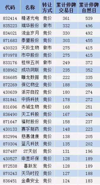 除了精湛光電,還有瑞華股份、流金歲月、天階生物等20多家掛牌公司因籌劃重大資產(chǎn)重組,停牌至今均超過(guò)半年。