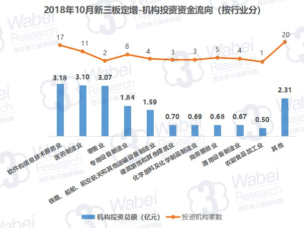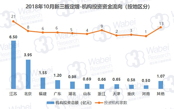 2018年10月,新三板企業(yè)共定增募資40.2億元,其中,機構(gòu)對企業(yè)投資18.34億元,同比降77%。機構(gòu)投資總額占新三板企業(yè)募資總額的45.6%。