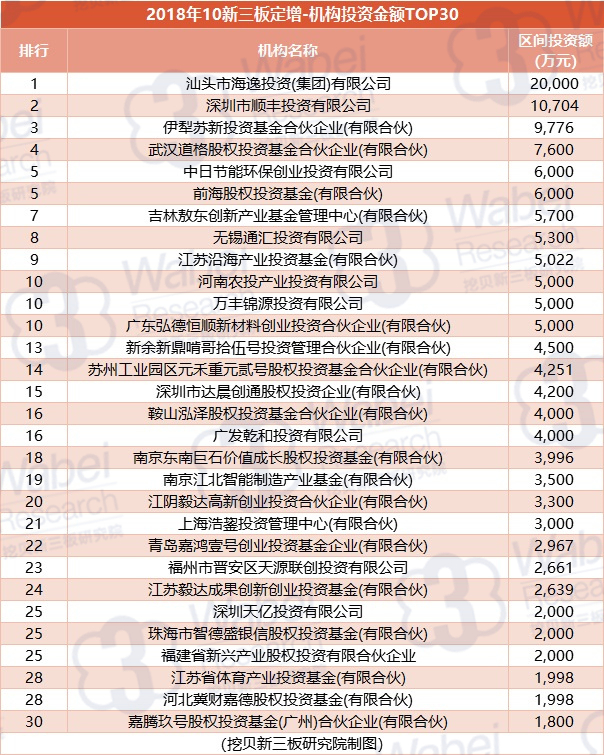 附:2018年10月新三板定增-機構(gòu)投資金額TOP30
