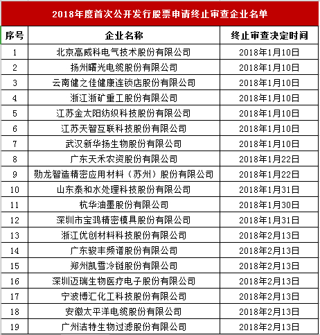本周終止IPO企業(yè)名單并未發(fā)生改變。