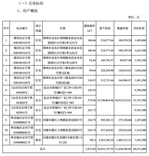 中原證券在公告中稱,擬將公司位于鄭州市、北京市、河源市的 11 處房產(chǎn)按不低于資產(chǎn)評估價值的價格,在河南中原產(chǎn)權(quán)交易有限公司公開掛牌轉(zhuǎn)讓,處置價格以實際成交價為準(zhǔn)。